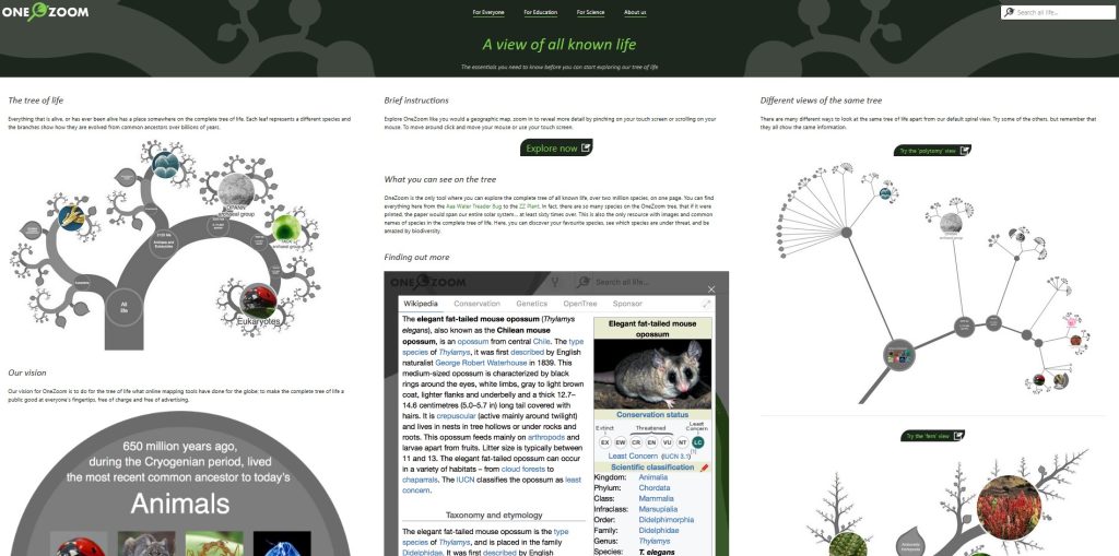 En el “arbre” interactiu es possible explorar les relacions entre 2.228.001 espècies i meravellar-nos amb 105.508 imatges en una sola pàgina ampliable.